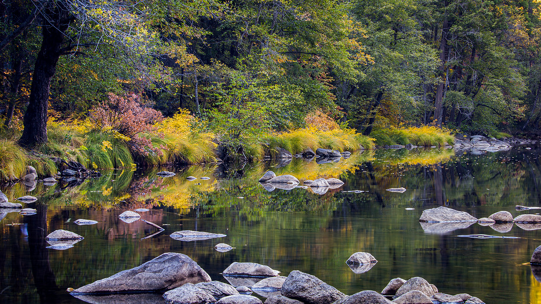 - Yosemite is not your typical fall color destination but the dogwoods, cottonwoods, and black oaks do show some impressive color. Walks along the Merced River will reveal some nice reflections as well. This is also a nice time to be in the park because it isn’t quite as crowded.