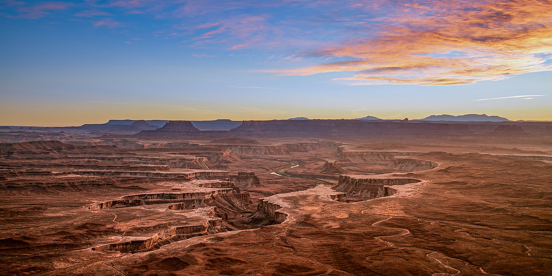 Earth: The vast canyons, layered mesas, and winding river channels viewed from Green River Overlook in Canyonlands National Park speak to time, erosion, and elemental forces. Geological formations like this one are shaped by water and wind. Using the river and canyon edges help to guide the viewer’s eye through the frame.