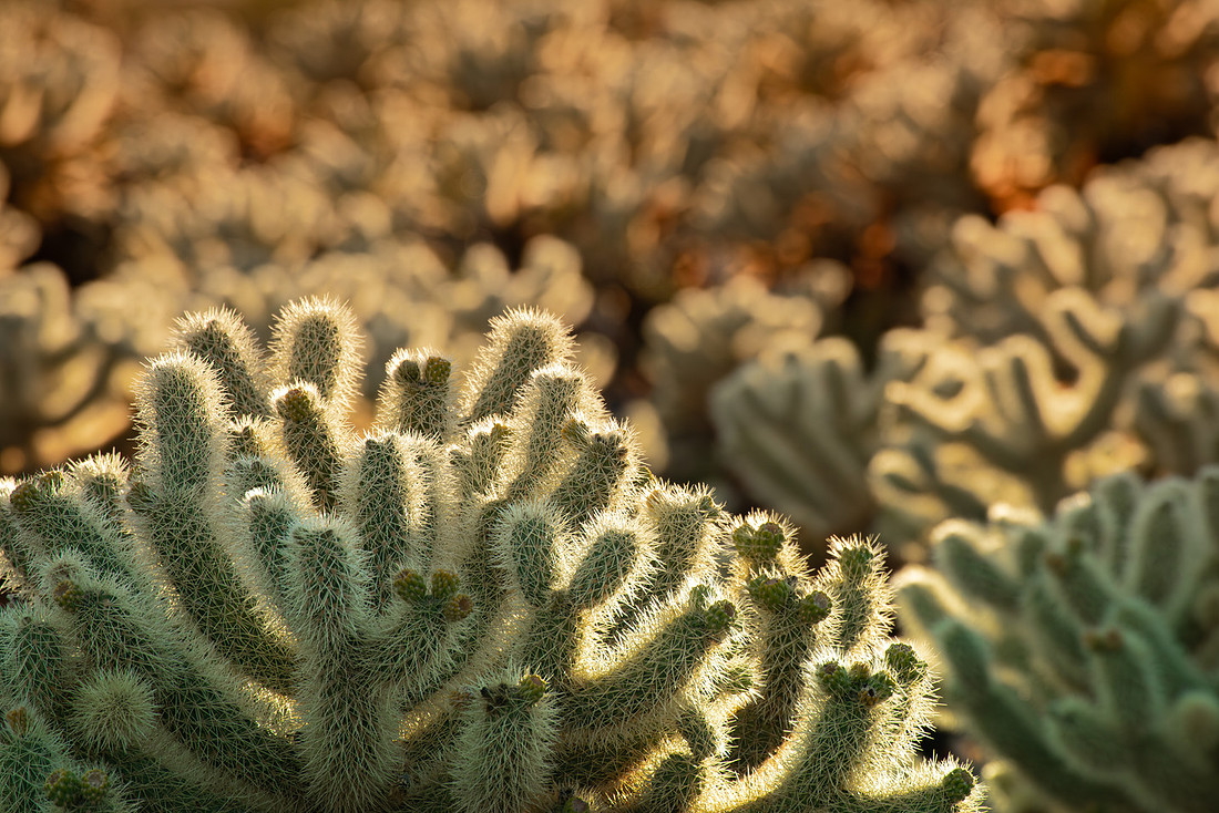 Fire: There's nothing better than a blazing summer sunset. Capture the fiery palette of summer skies—orange, crimson, magenta—especially in arid regions where dust and heat intensify the glow. Many desert plants, like ocotillo, agave, and cholla catch light dramatically. Position subjects between you and the rising or setting sun. Cholla spines, for instance, become radiant halos when backlit. Using overlapping elements helps build a sense of scale and heat radiating through the frame.